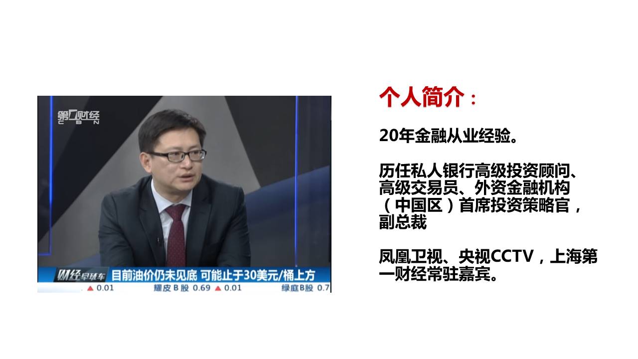 毕业于上海财经大学研究生院,在中外资金融机构任职多年,曾任私人银行高级投资顾问、交易员等职,加入钜派前,曾任星展银行(中国)有限公司个人银行部副总裁、投资总监,拥有多年企业及个人金融经验,为《第一财经》、《东方财经》等媒体特约嘉宾。